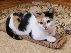г. Раменское. Кошечка 1.5 года, трёхцветная, домашняя, к лотку приучена, с другими животными ладит, игривая, общительная, к лотку приучена. Ищет семью. Звонить по телефонам.